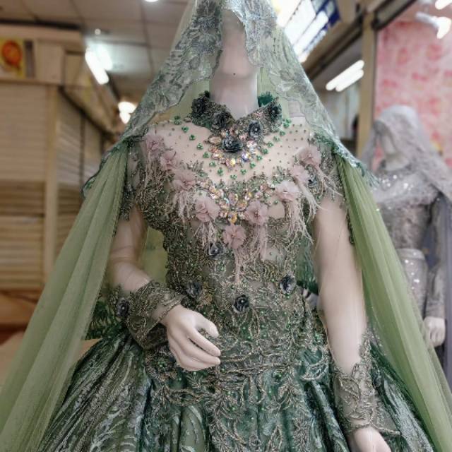 Gaun Pengantin Warna Hijau Tosca